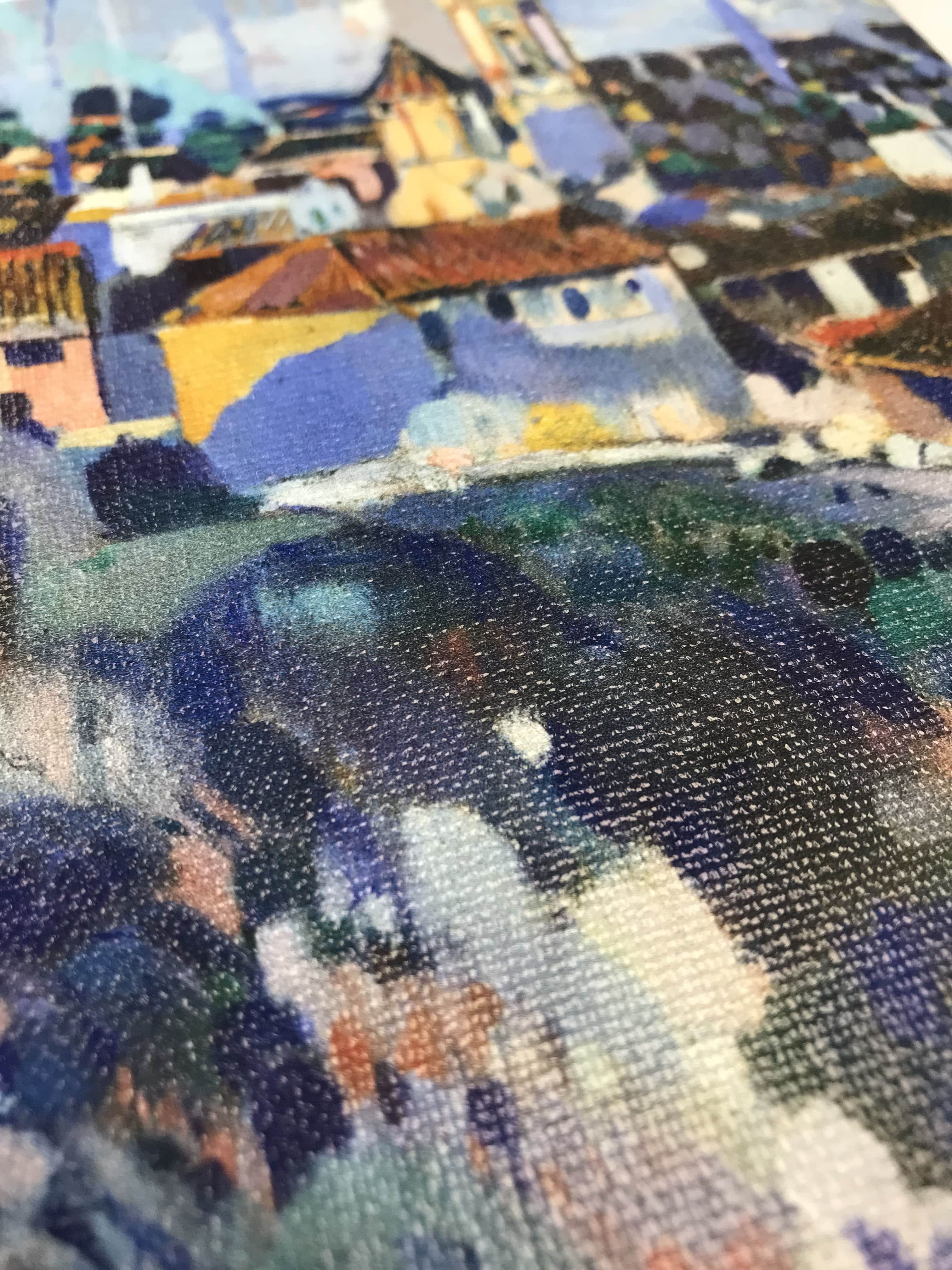 Our giclee printers can print on a huge variety of substrates with various thicknesses and finishes. This means that we can print an image that was originally a watercolor, on a very high quality, heavy, “cold-pressed” paper to achieve the most realistic reproduction possible. The same goes for canvas. We are able to use artist grade canvas because our fine art giclee printers can handle the thickness and texture of the substrate. It’s also important to mention that giclee prints are archival, meaning they will never yellow or deteriorate, and if you encounter anything less than that, it should be avoided. Like generic seltzer…